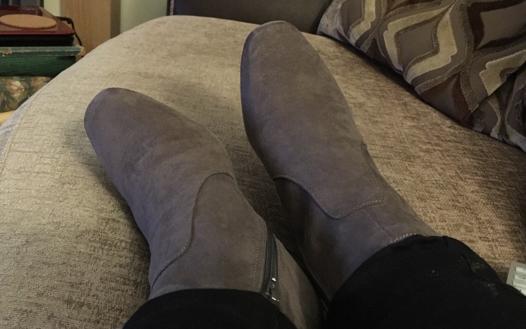 The frustration is overwhelming; I’m sat here on the settee with my ankle boots still on being snappy and short with P as he’s attempting to help me change into my more comfy clothes. Bless him, he’s so sweet and whilst I do know that he helps me with everything and that I’d be stuck without him and blah, blah, blah but at this moment, all that’s going through my mind is why can’t he get my bloody boots off!